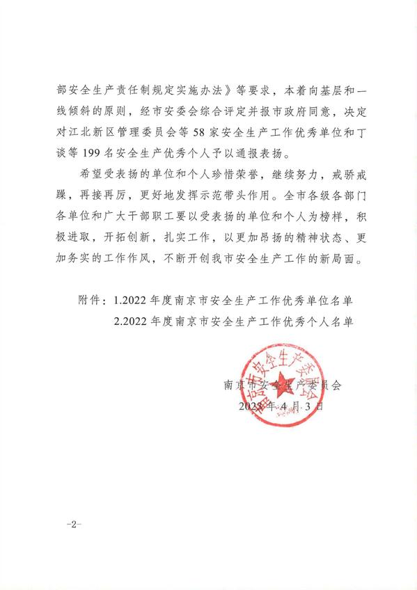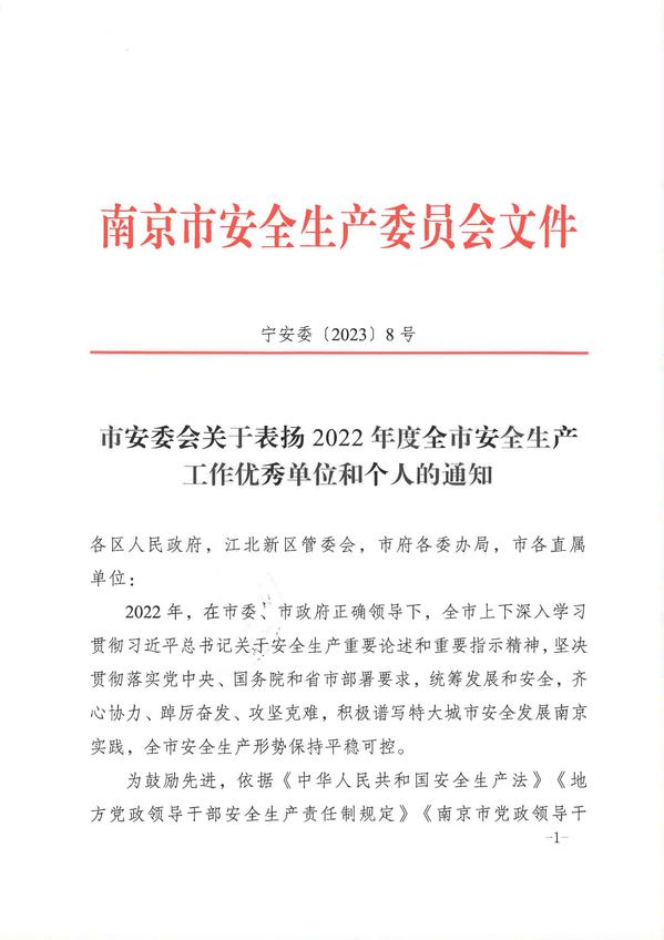 根据宁安委〔2023〕8号《市安委会关于表扬2022年度全市安全生产工作优秀单位和个人的通知》精神,我校土木与交通工程学院土木与交通工程学院院长郭正兴教授荣获“南京市安全生产工作优秀个人”荣誉称号。