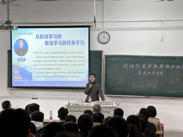 4月7日下午,电子与计算机工程学院邀请中兴通讯股份有限公司副总裁、产品总经理胡继东高级工程师来校作《从校园学习到职场学习到终生成长》主题报告并受聘为我校客座教授。东南大学线上赌博app 学院副院长戴玉蓉、电子与计算机工程学院党政领导及100余名师生出席报告会。报告会由电子与计算机工程学院院长王晓蔚主持。