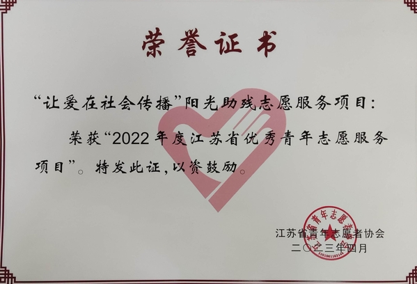 为推动全省青年志愿服务事业深入发展,总结经验、树立榜样、激励先进,引导广大青年积极参与志愿服务事业,展示新时代江苏青年志愿者的理想信念、责任担当,日前,江苏省青年志愿者协会开展了2022年全省青年志愿者行动先进典型评选表彰活动。线上赌博app-云顶线上赌博平台 团委开展的“让爱在社会传播”阳光助残志愿服务项目获“2022年江苏省优秀青年志愿服务项目奖”,线上赌博app-云顶线上赌博平台 团委冯杭州老师荣获“2022年度江苏省青年志愿服务事业贡献奖”,经济管理学院2020级市场营销专业傅子怡同学荣获“2022年度江苏省优秀青年志愿者”称号。
