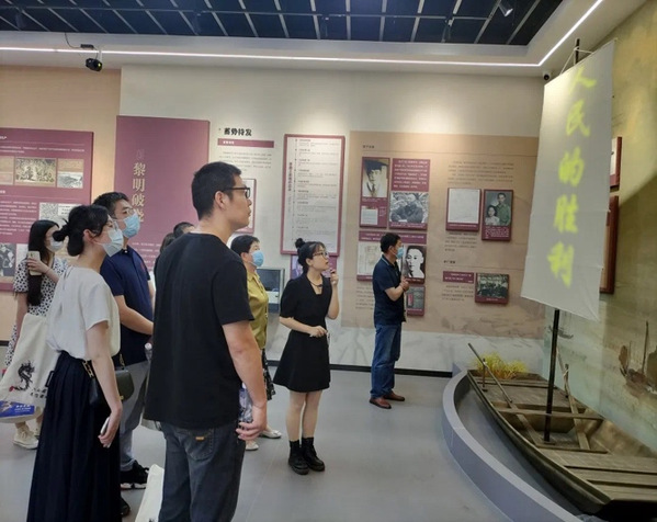 首先,在六合区档案馆工作人员带领下,大家参观学习档案数字化工作,现场分为扫描、质检、装订、整理等区域,数字化工作有条不紊地进行;随后大家进入档案库房,参观了《申报》、《四部备要》等珍贵档案和土地确权、婚姻登记等专题档案;最后,大家来到六合区红色档案展示教育室,讲解员从“曙光初见、抗日中坚、黎明破晓、不朽丰碑、赓续初心、展望未来”几个部分娓娓道来,回忆了六合区这块红色土地在中国共产党领导下的峥嵘岁月,体会到红色档案释放出的强大凝聚力和感召力