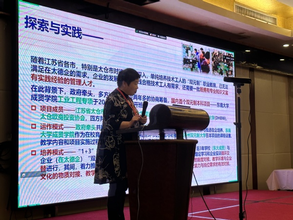 许院长在会上做了校企协同育人主题发言,她以《多方协同育人模式探索与实践—中国式本科双元制》为主题,强调了多方协同育人是新工科建设的重要支撑,此模式可有效推进和完善新工科趋势下的产教融合、产学融合、校企合作等协同育人体制改革;许院长在会议中提出,线上赌博app-云顶线上赌博平台 作为东南大学用全新办学理念和运行模式举办的应用型大学,一直以来积极探索学校与行业、企业以及政府等联合办学合作模式,于2017年开始我校就与德国巴登符腾堡双元制应用科学大学、江苏太仓欧商投资协会、江苏省太仓市人民政府合作,探索开展产教融合多方协同育人背景下的应用型人才培养模式改革“本科双元制”,构建政府、行业、企业、学校育人共同体,把“工匠精神”培养融入教学全过程,让学生“毕业即就业”,实现了学校到职场的无缝衔接,成为高校应用型人才培养模式改革的成功案例。
