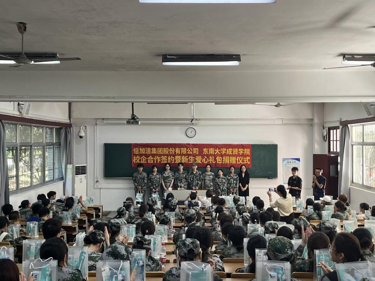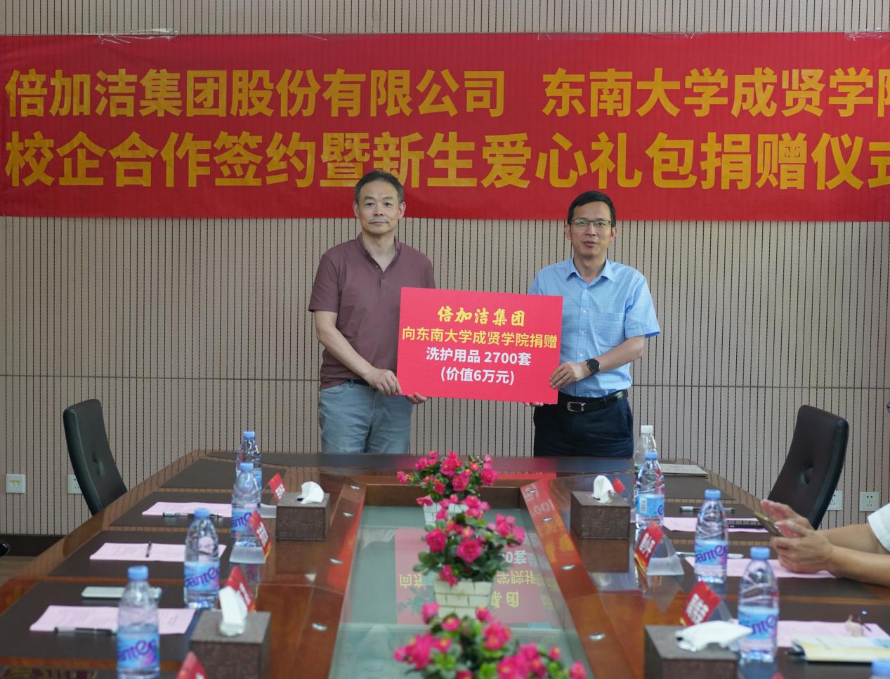 下午,唐凌总监代表集团为制药与化学工程学院新生代表发放了爱心礼包。此次倍加洁集团共向我校2023级新生和教职工捐赠洗护用品2700套,总价值6万元。