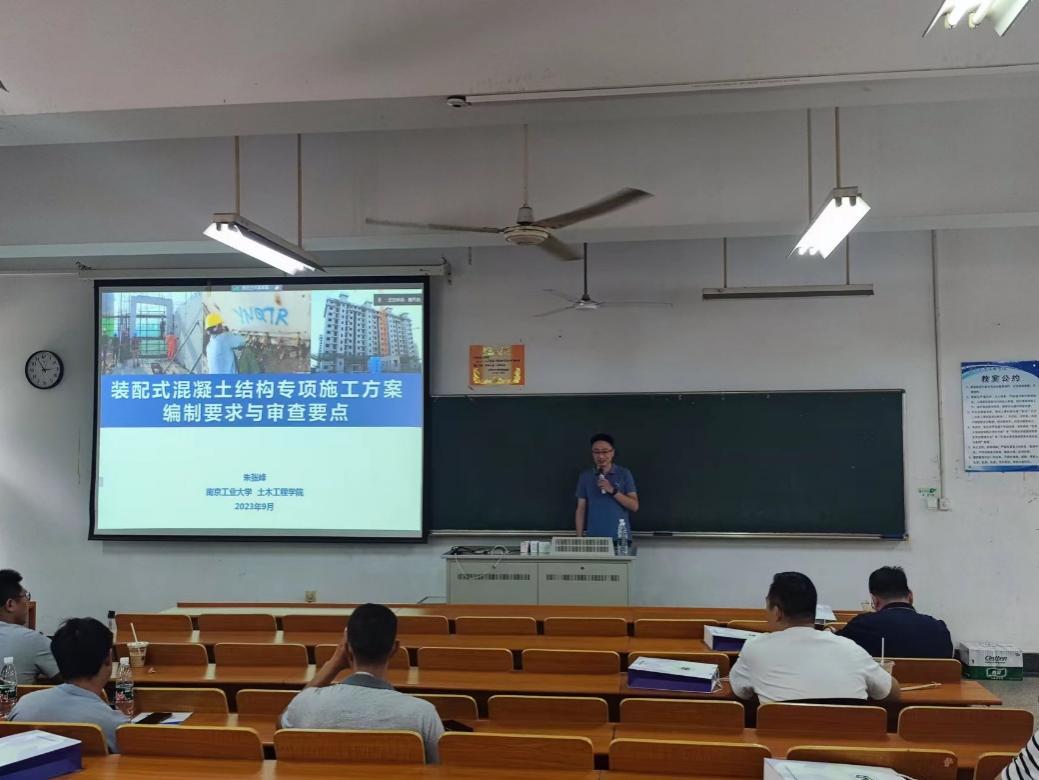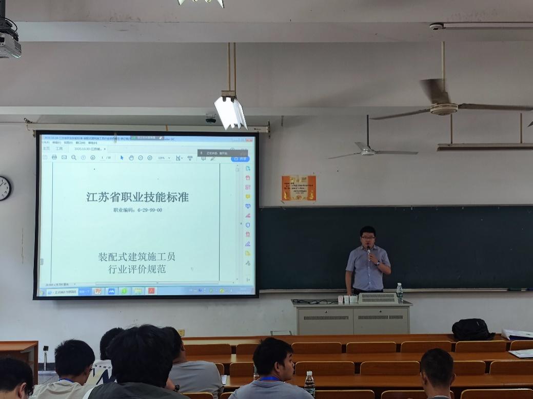 理论部分培训分别邀请江苏省职业技能鉴定中心鉴定考核科科长朱政作“技能人才评价工作介绍”,江苏建联建筑产业现代化研究院院长樊骅作“装配式建筑施工员职业技能考核规范解读”,江苏建联建筑产业现代化研究院总工程师贺鲁杰作“预制混凝土构件生产的理论知识和实操要点讲解”,线上赌博app-云顶线上赌博平台 土木与交通工程学院院长郭正兴教授作“装配式建筑施工质量控制与安全技术讲解”,南京工业大学土木工程学院朱张峰副教授作“装配式混凝土结构专项施工方案编制要求与审查要点讲解”。