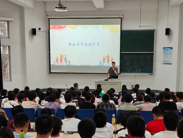 9月22日,土木与交通工程学院在文昌院110教室举办了2023级校友导师青春分享会。学院院长助理、综合办主任石城,学院校友会秘书长赵毅、辅导员田宇婷、土木与交通工程学院23级全体新生参加本次分享会。邀请的嘉宾还有东南大学在读研究生、19级土木工程专业毕业生张吴桐,恒丰银行南京分行客户经理、19级土木工程专业毕业生王洋,以及南京高新经纬电气有限公司业务代表、19级交通运输专业毕业生谢明洲。