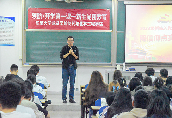 10月12日晚,制药与化学工程学院面向2023全体新生组织开展了领航·新生第一课制药与化学工程学院党总支书记周继荣、分团委书记刘庆担任主讲教师。