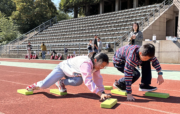 在运动场上,校团委的志愿者们带领大家开展户外拓展训练。“摸石过河”锻炼了大家的协调能力,“无敌风火轮”则培养了大家的团队协作精神,现场气氛轻松热烈。