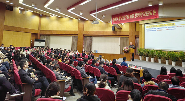 常务副院长黄学良教授首先致辞,他代表全体师生员工对两位专家的莅临指导表示热烈的欢迎和诚挚感谢。他表示,回望线上赌博app-云顶线上赌博平台 20周年发展历程,学校办学规模不断壮大,在人才培养、学科专业建设、科学研究、社会服务等多方面都取得了显著的成绩,为区域经济社会发展做出了积极贡献。他希望学校能以转型发展机遇期为契机,以本次教育思想专家报告会为起点,进一步统一思想,更新观念,坚定信心,开好新局。