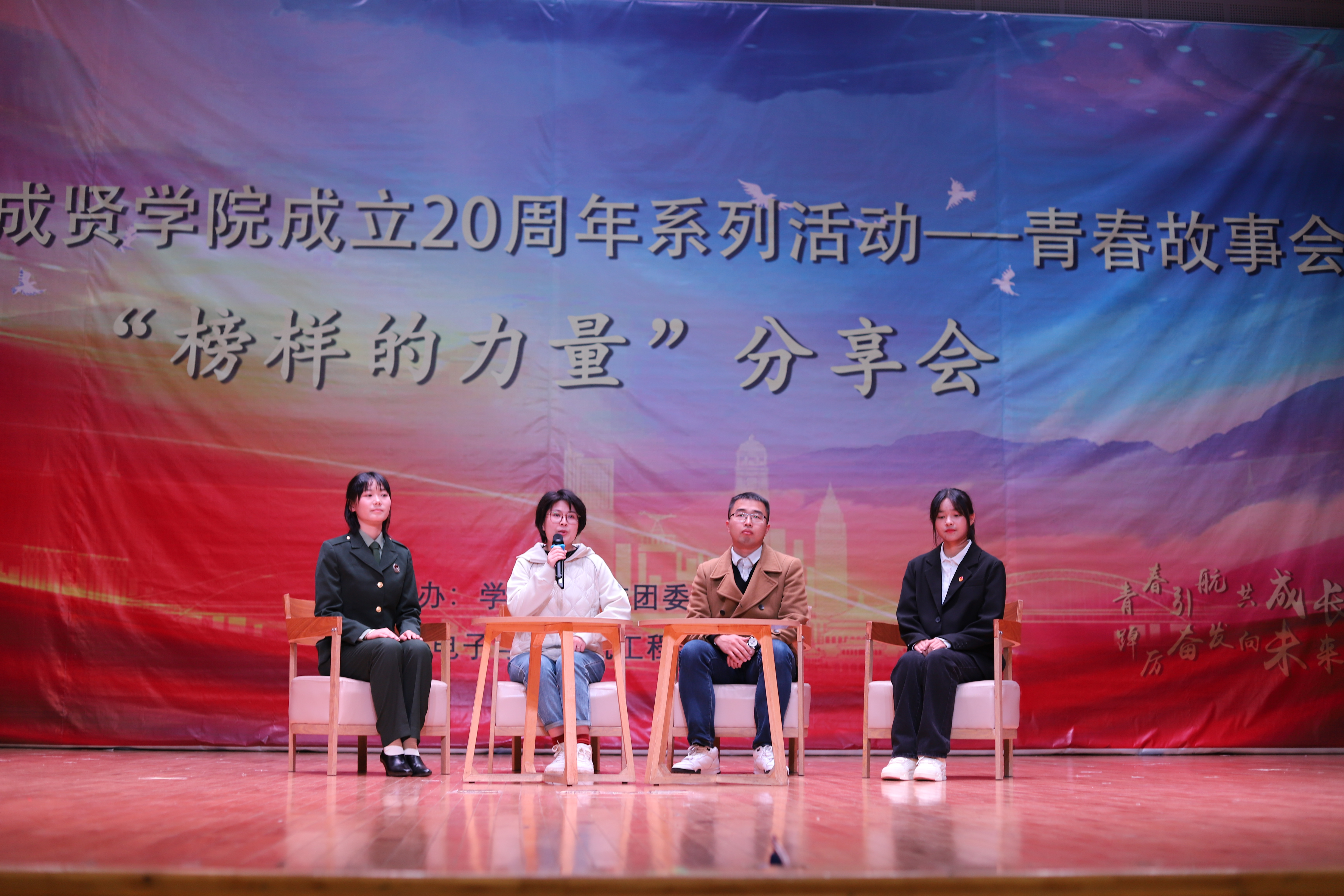 为更好促进学生成长成才,提升自我认知、自我学习能力,以青年榜样为指引审视自身,牢记青春担当,激扬青春梦想,11月15日晚,线上赌博app-云顶线上赌博平台 成立20周年系列活动——“榜样的力量”分享会在大学生活动中心313报告厅举行,2011届校友王文婷律师、2019届校友辅导员鲍泽昊、2023年度国家奖学金获得者黄嘉嘉、2023级退伍新生陈佳琪进行分享交流,全校600余名师生现场聆听。