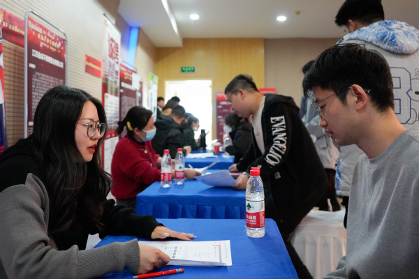 18日下午,为帮助我校毕业生实现更加充分、更高质量的就业,满足企业对各类人才发展需求,结合江苏团省委“百校千企万岗”江苏省大学生就业帮扶行动“送岗直通车”活动,23家就创业校友企业在大活中心307开展招聘活动,学生处处长施杰亲自到场指导。本次活动共提供300多个岗位,800多名毕业生现场参加了选岗面试,进一步加强了学校与校友及校友企业的交流合作。