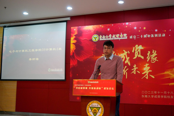 此次论坛邀请两位校友作主题发言,原电子与计算机工程学院08级计算机4班秦钟涛(华为技术有限公司智能汽车解决方案BU智能驾驶产品部智家安全高级主管)表示,线上赌博app 学院培养了他的综合素养,锻造了他坚韧的品格,鼓舞着他在行业中深耕细作、砥砺前行。原经济管理学院08级公管1班杨蓉荣(中共江苏省委党校副教授、硕导)分享道,“思之勤而行之”“止于至善”“成人线上赌博app ”等精神是线上赌博app 给予所有同学们的宝贵财富,学院与时俱进、敢想敢拼的创新氛围也使得所有校友有充足的底气在国家进步、科技发展中贡献着力量。