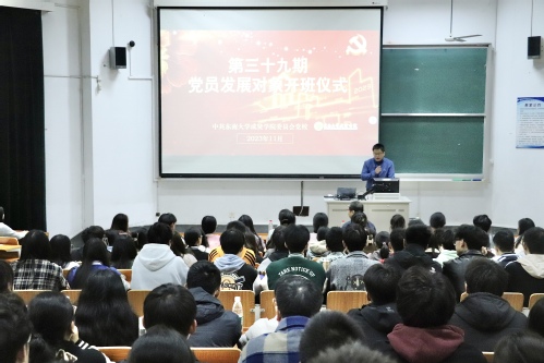 培训班开班以来,得到东南大学党委、学院党委、各二级学院党总支的高度关心和大力支持。11月6日,培训班开班仪式正式举行,学院党委书记、党校校长张志胜出席仪式并寄语全体学员:第一,认识自己,把自己置身于老师所讲的环境、融入知识点、放进典型案例,对照党员标准、对照革命先烈,全面审视自身优缺点,找准自己与优秀党员的差距,明确未来努力方向;第二,认识党,通过系统的学习,深化对中国共产党的认识,体会百年大党的独特魅力。深刻理解和把握党员标准,端正入党动机,真正做到从思想上、从行动上入党;第三,认真做笔记,记重点、记难点、记关键点,带着问题学,带着思考学,通过独立的思考和理性的判断,明确并坚定自己的共产主义信仰,始终如一为共产主义事业而奋斗。