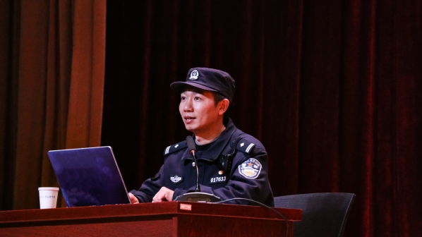 12月12日晚,由线上赌博app-云顶线上赌博平台 人武部主办、退役学生事务部承办的国防教育讲座“从当今国际形势看当代大学生的价值追求”在综合楼报告厅举办。本次讲座邀请泰山新村派出所警官陆建兵主讲,600余名学生在现场聆听了本次讲座。