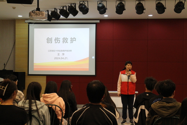 为深入推进平安校园建设,增强学生的安全救护意识,提高正确应对校园安全事故和应急救护的能力4月21日校团委志愿者工作部联合南京市江北新区红十字应急救护培训中心在综合楼多功能厅开展“学习急救知识,传递爱心火炬”初级救护员培训活动我校42名同学参加培训并取得初级救护员证。