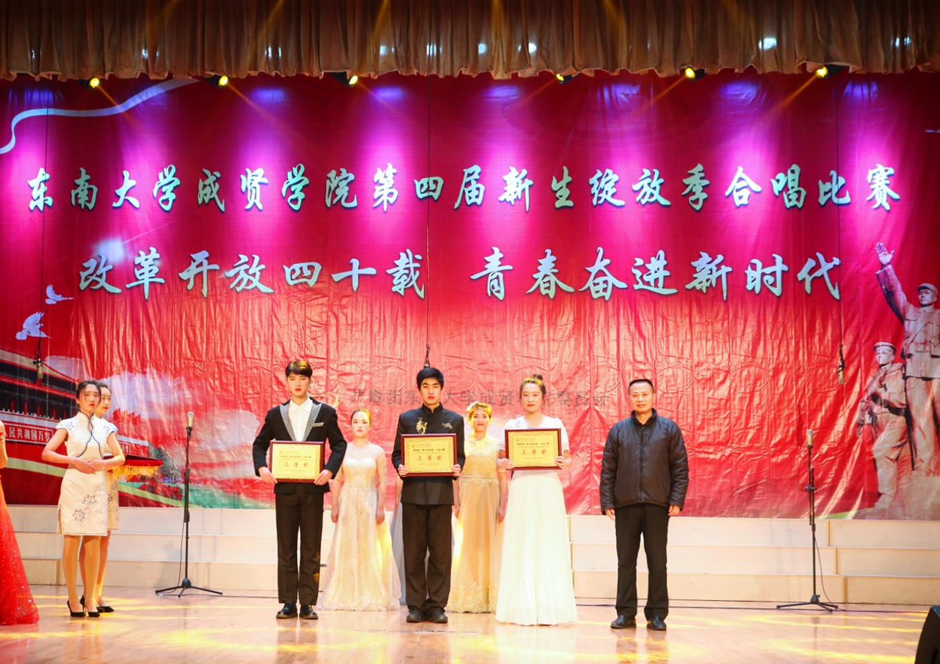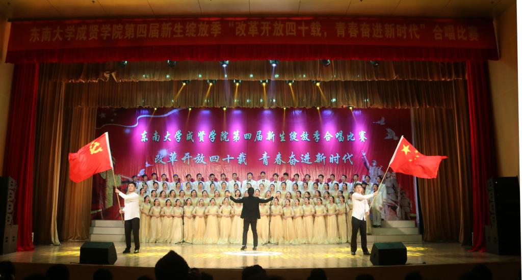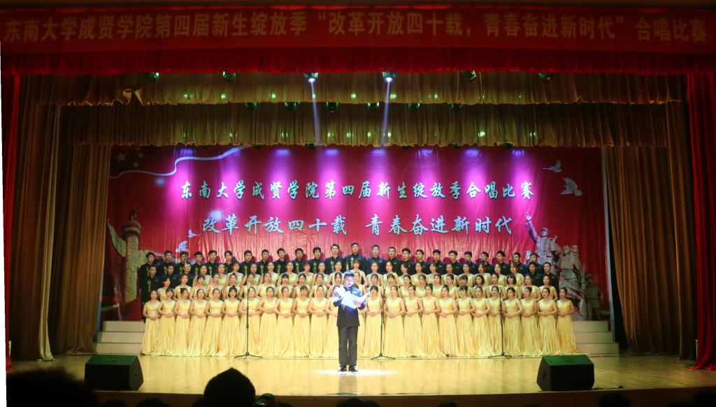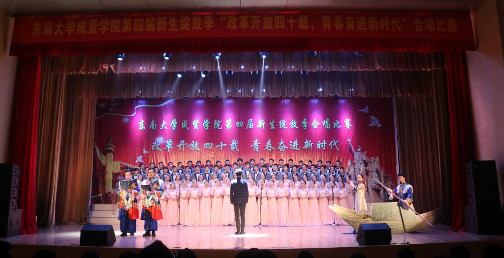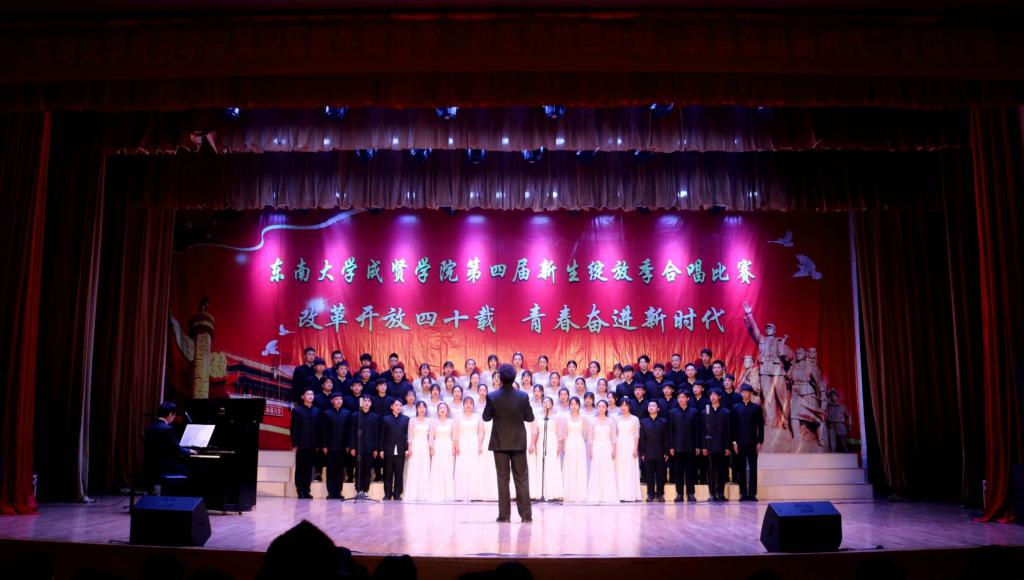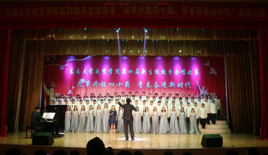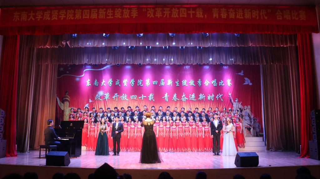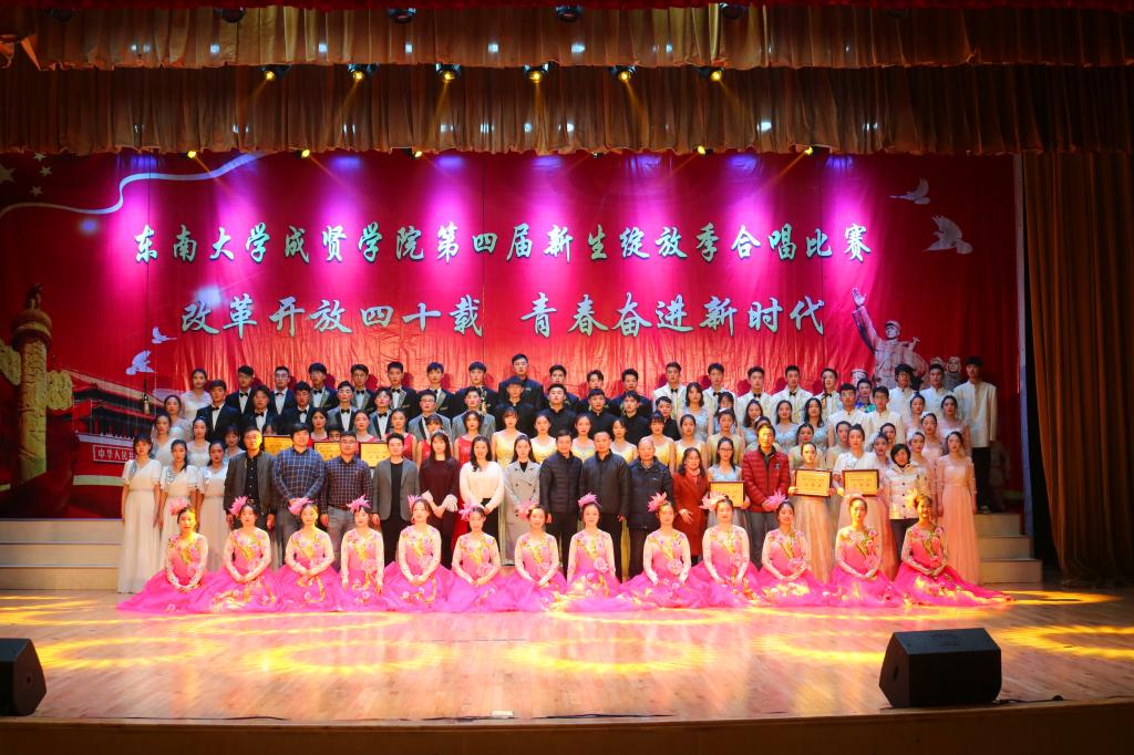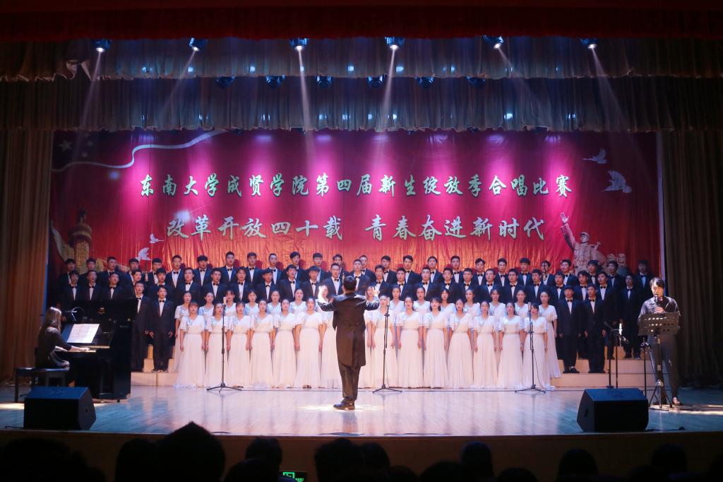 比赛中,大学生艺术指导中心音乐团倾情演绎歌曲《望春风》,展现了经典民谣的优美旋律;各学院老师积极参与指导与演出,师生们通力合作,用铿锵有力、激昂向上的歌声引发了观众对改革开放四十周年来伟大变革的共鸣,充分表达出线上赌博app 学子更加坚定走中国特色社会主义道路、改革开放道路的信心与决心。比赛在全场齐唱雄壮的《东南大学校歌》声中圆满结束。