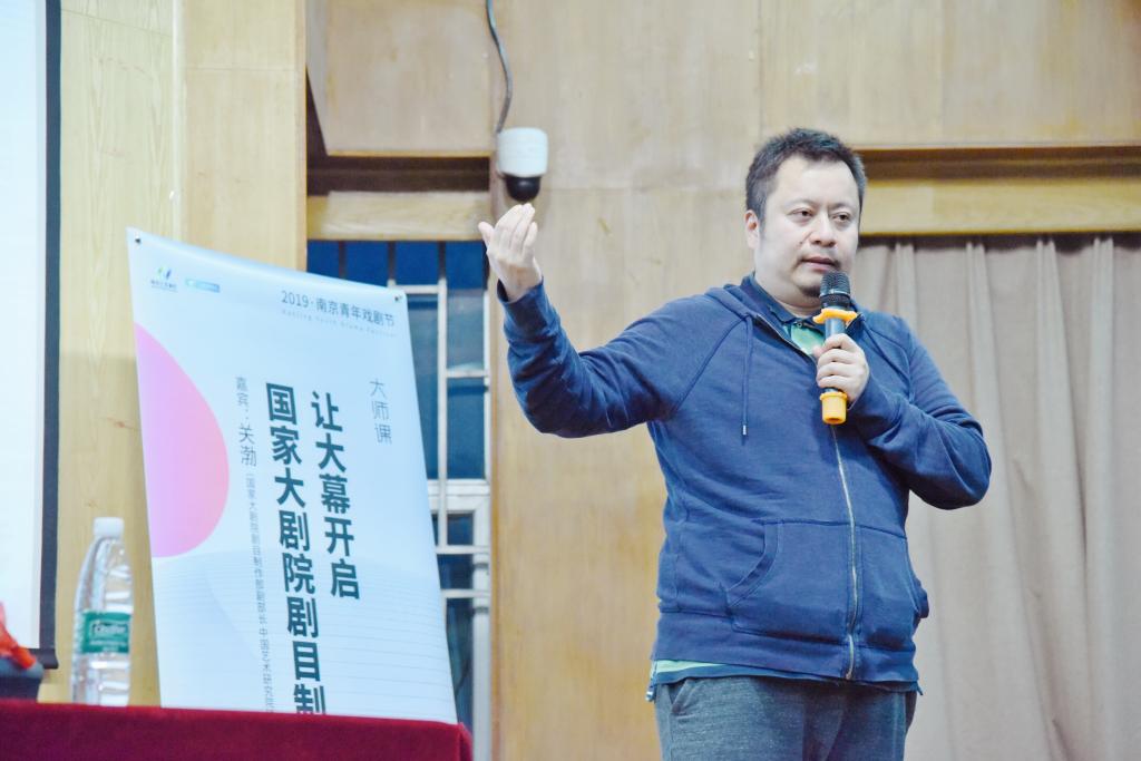 4月19日,由江北新区党工委宣传部、南京蓝色天际文化传媒有限公司主办,我校大学生艺术指导中心承办的“2019南京青年戏剧节”之《让大幕开启》戏剧大师课在真知馆报告厅举行。国家大剧院剧目制作部副部长、中国艺术研究院硕士导师关渤担任主讲,300余名师生现场聆听了此次讲座。