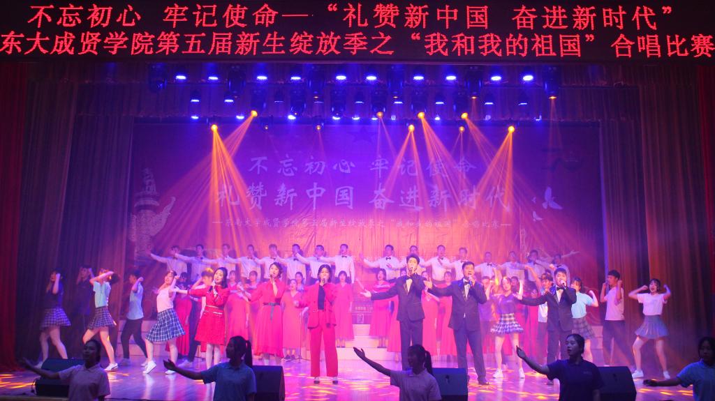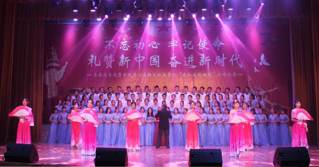 比赛在教职工合唱团及大学生艺术指导中心编排的歌舞《我们都是追梦人》和《往届新生绽放季合唱比赛回顾视频》中拉开帷幕。全校2019级学生以学院为单位组成6支合唱队伍,经过两个月的紧张筹备与排练,分别演唱了两首曲目。其中《东南大学校歌》为必选曲目,另一首以“歌颂祖国、歌颂党”为主要题材,各参赛队伍通过舞蹈、手语表演、朗诵、队形变化等多种表演形式先后演绎了《我的祖国》《在灿烂阳光下》《千山万水》《天耀中华》《爱我中华》等经典曲目,比赛期间,大学生艺术指导中心音乐团带来的歌曲《鸿雁》,歌曲浑厚悠远,深具蒙古族音乐特色。演唱各具特色、形式新颖,参赛学生以饱满的热情、高超的演唱技巧和良好的舞台风范为全体观众带来了一场充满爱国主义精神的视听盛宴,全场气氛热烈、高潮迭起。