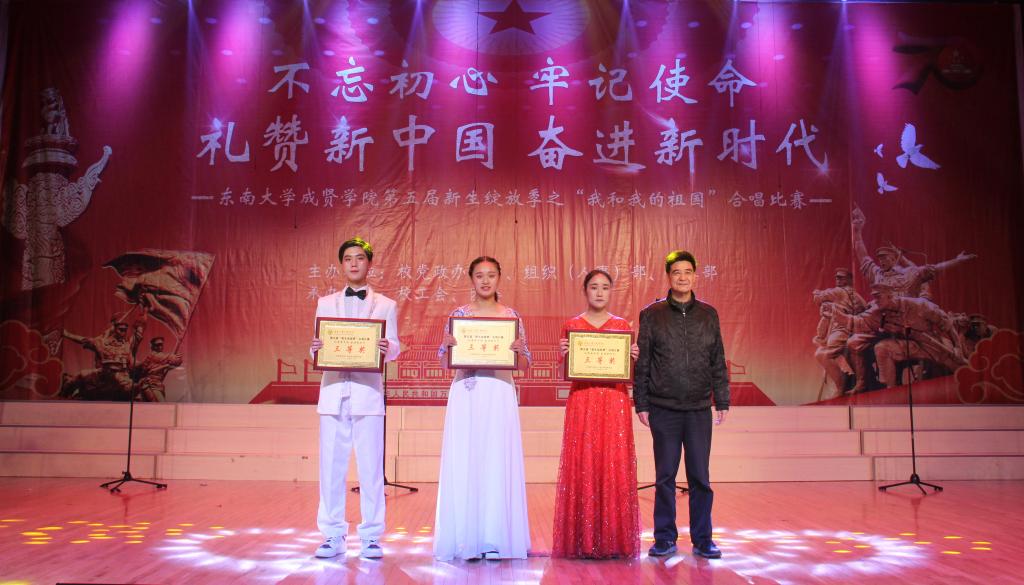 经过激烈角逐,经济管理学院荣获一等奖,建筑与艺术设计学院、土木与交通工程学院获得二等奖,机械与电气工程学院、电子与计算机工程学院、制药与化学工程学院获得三等奖,到场领导为获奖团队颁奖。比赛在全场齐唱嘹亮的《歌唱祖国》声中圆满落下帷幕。