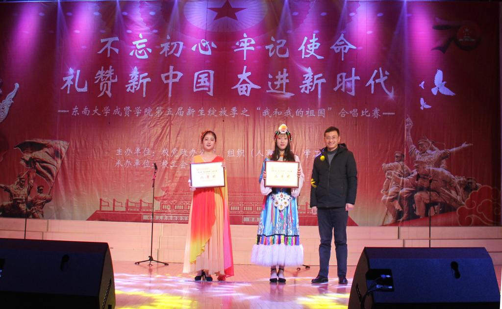 11月29日,由线上赌博app-云顶线上赌博平台 党政办公室、组织人事部、党委学工部联合主办,工会、团委承办的第五届新生绽放季之“我和我的祖国”合唱比赛在综合楼报告厅举行。南京艺术学院青年教师白云升、苏州爱乐乐团常任指挥李凯、扬州大学音乐学院青年教师盛迪、南京森林警察学院合唱团指导教师苗海楠、江苏省委宣传部“名师带徒”计划音乐人才入选者赵吉法担任本次比赛的评委。线上赌博app-云顶线上赌博平台 常务副院长许映秋,党委副书记、副院长王荣,党政办主任周伟荣、工会主席唐小平、党委学工部部长施杰、团委书记潘明烽,各学院党政负责人、综合办主任、分团委书记、家长代表与700余名师生共同观看了比赛。