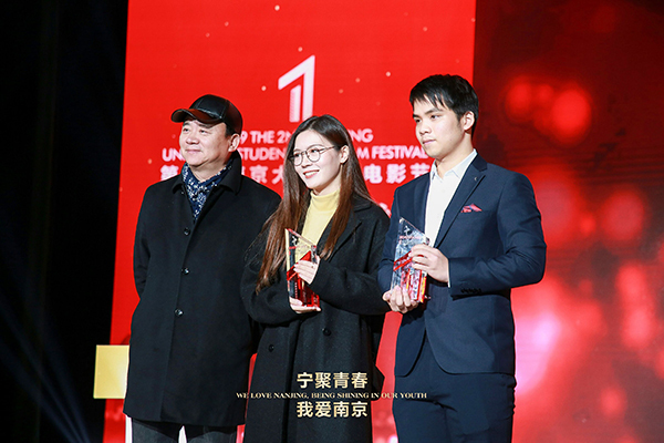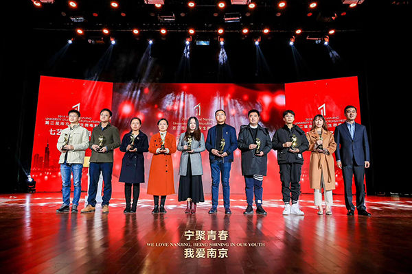 此次微电影节历时187天,27所院校提交总作品数量达211部。这其中不仅有在宁高校作品,还有以北京电影学院、中国传媒学院为代表的来自全国多所院校的高质量作品。我校共申报59部作品。经由组委会初审、专家评审,最终评选出本届大学生微电影节最佳影片以及专业组、非专业组共计14个专项奖。我校《青春有梦3》获得最佳剧情奖,并入围最佳创意奖、最佳剧情奖、最佳女主角三项提名,获奖团队李茂昌、张玥同学在台上分享了自己的创作心得。包括我校在内的东南大学、南京理工大学等12家高校获得优秀组织奖,8名同学获优秀作品奖。