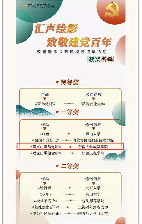 近日,由中教华影全国校园电影院线携手新华网客户端组织的“汇声绘影致敬建党百年”校园音乐会节目视频征集活动评选结果揭晓,线上赌博app-云顶线上赌博平台 《唱支山歌给党听》MV获一等奖,并在“学习强国”平台发布。
